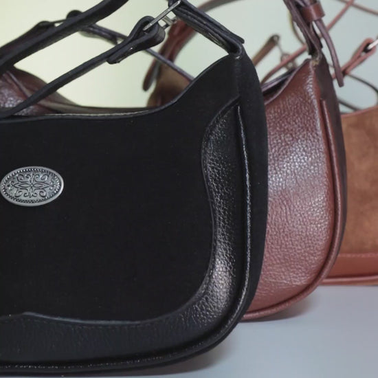 Bolsa de Ombro Feminina em Couro Camurça – Modelo Hobo com Alça Ajustável