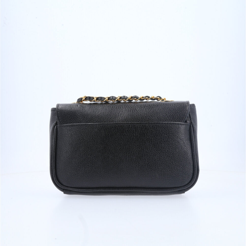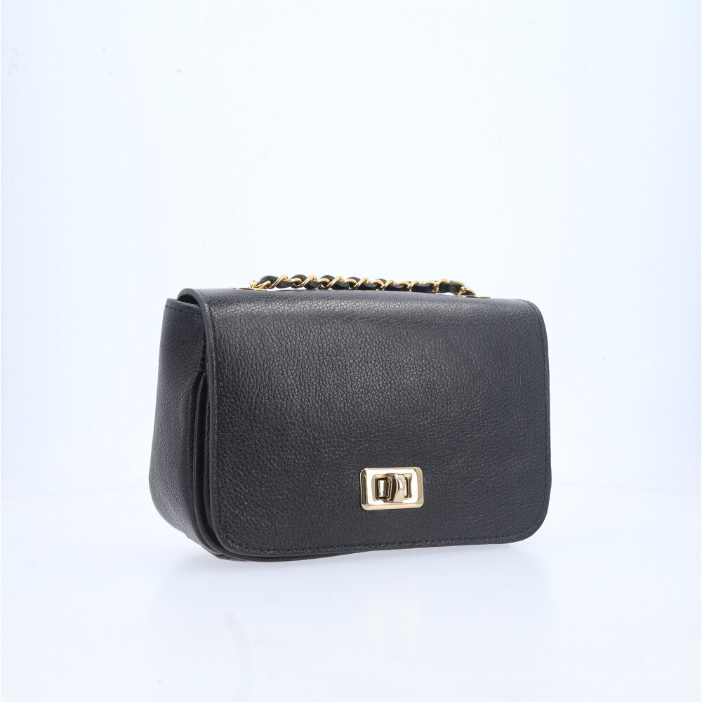 Bolsa Tiracolo em Couro com Fecho Giratório Preto