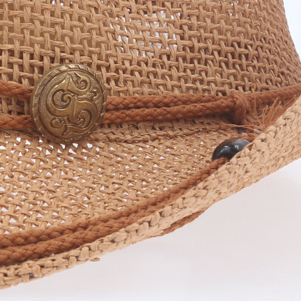 Chapéu de Palha Country Unissex – Estilo Cowboy com Cordão Ajustável e Medalha Decorativa