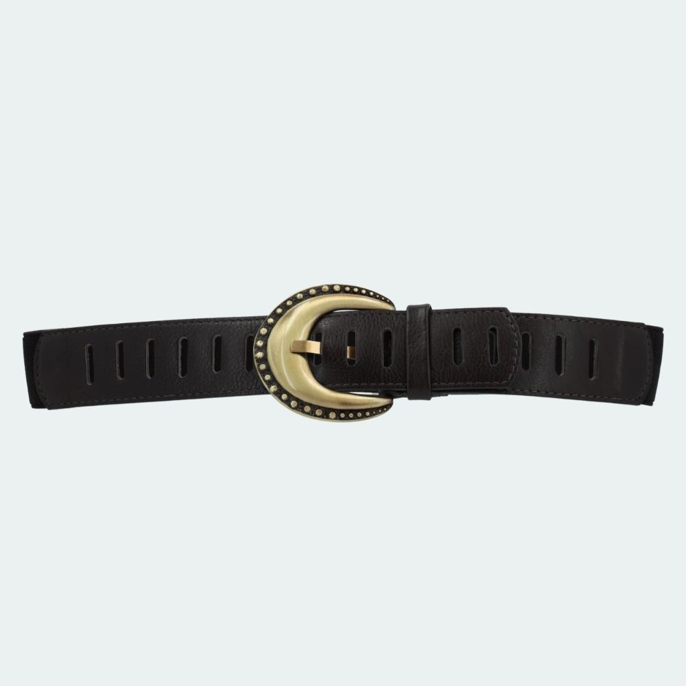 Cinto Boho em Couro com Elástico Marrom escuro
