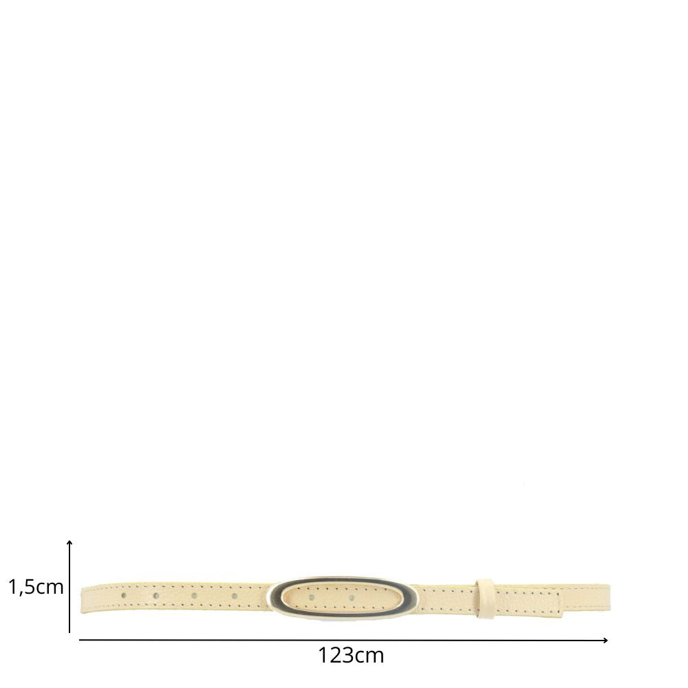 O cinto feminino plus size é confeccionado em couro. Possui fivela oval em metal folhado, passante fixo em couro e fechamento em pino de encaixe.