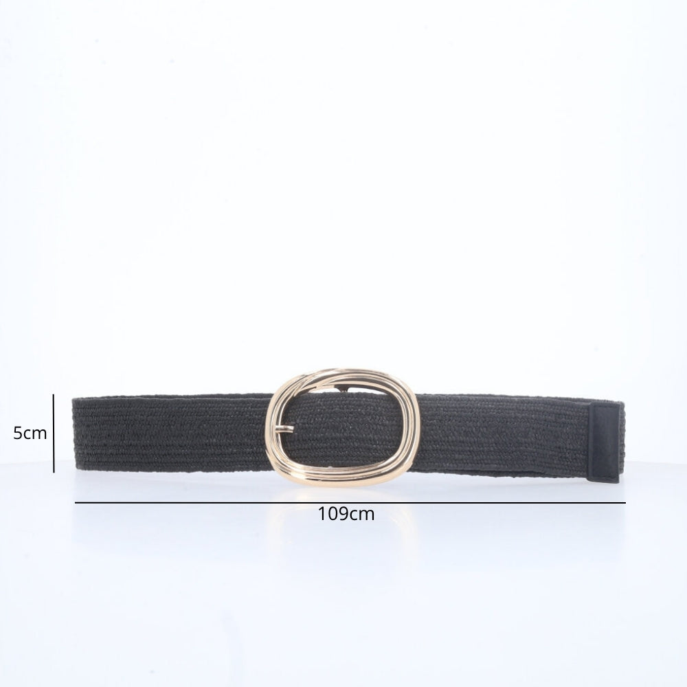 Cinto Feminino de Ráfia com Elástico e Fivela Oval Metalizada – Estilo Natural Chic
