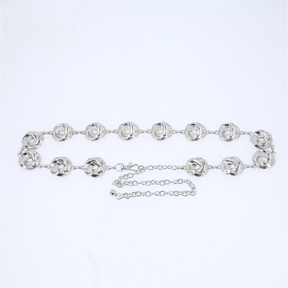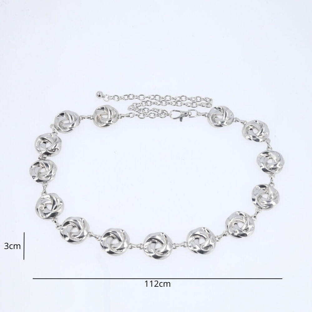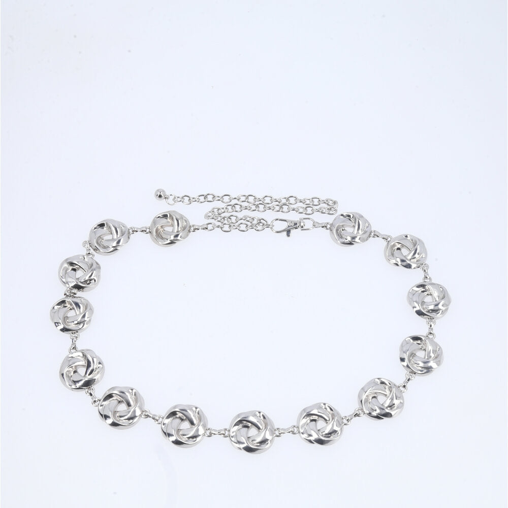 Cinto Feminino de Corrente Elos Vazados Ajustável Prata