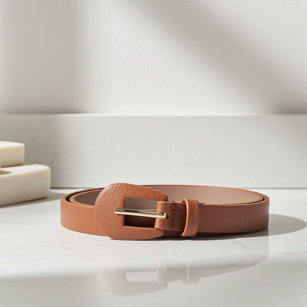 Cinto Feminino de Couro com Fivela Encapada Oval – Elegante e Versátil
