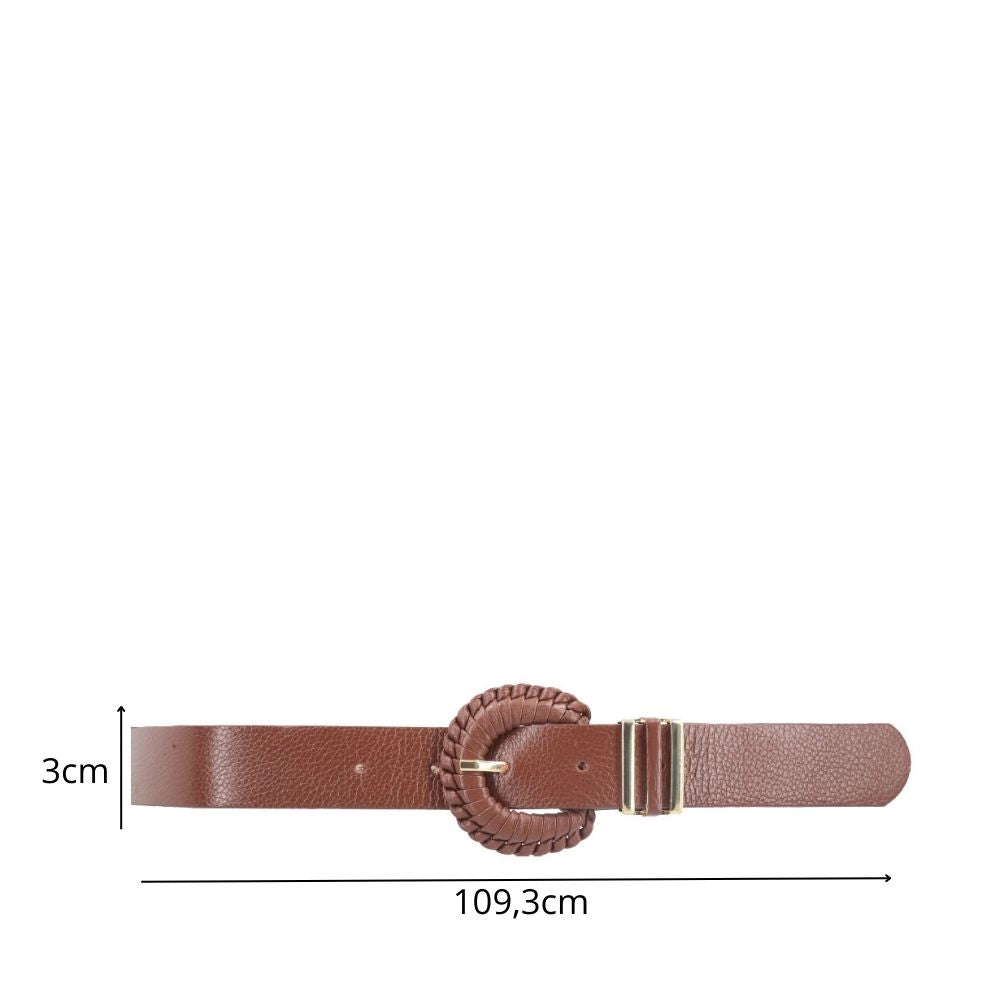 Cinto Feminino de Couro com Fivela Tressê Redonda Marrom