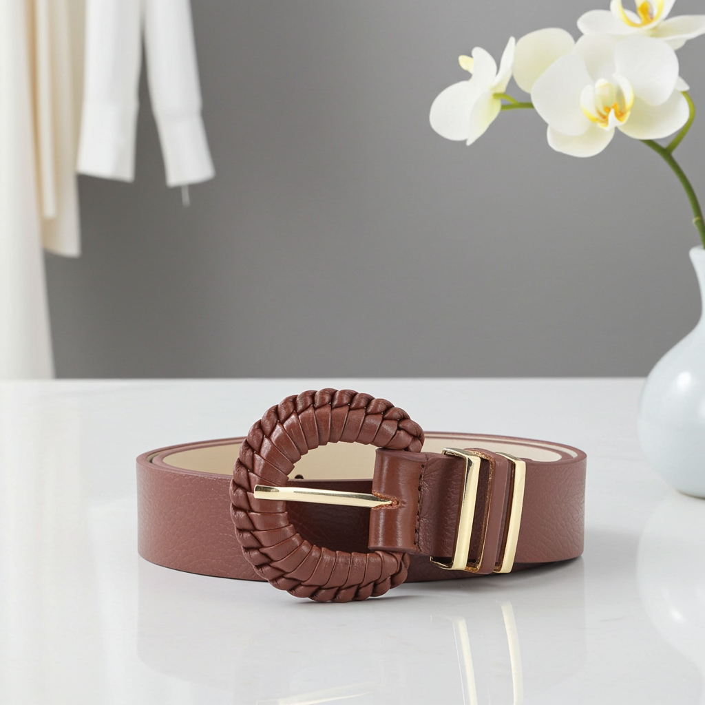 Cinto Feminino de Couro com Fivela Tressê Redonda – Elegante e Versátil