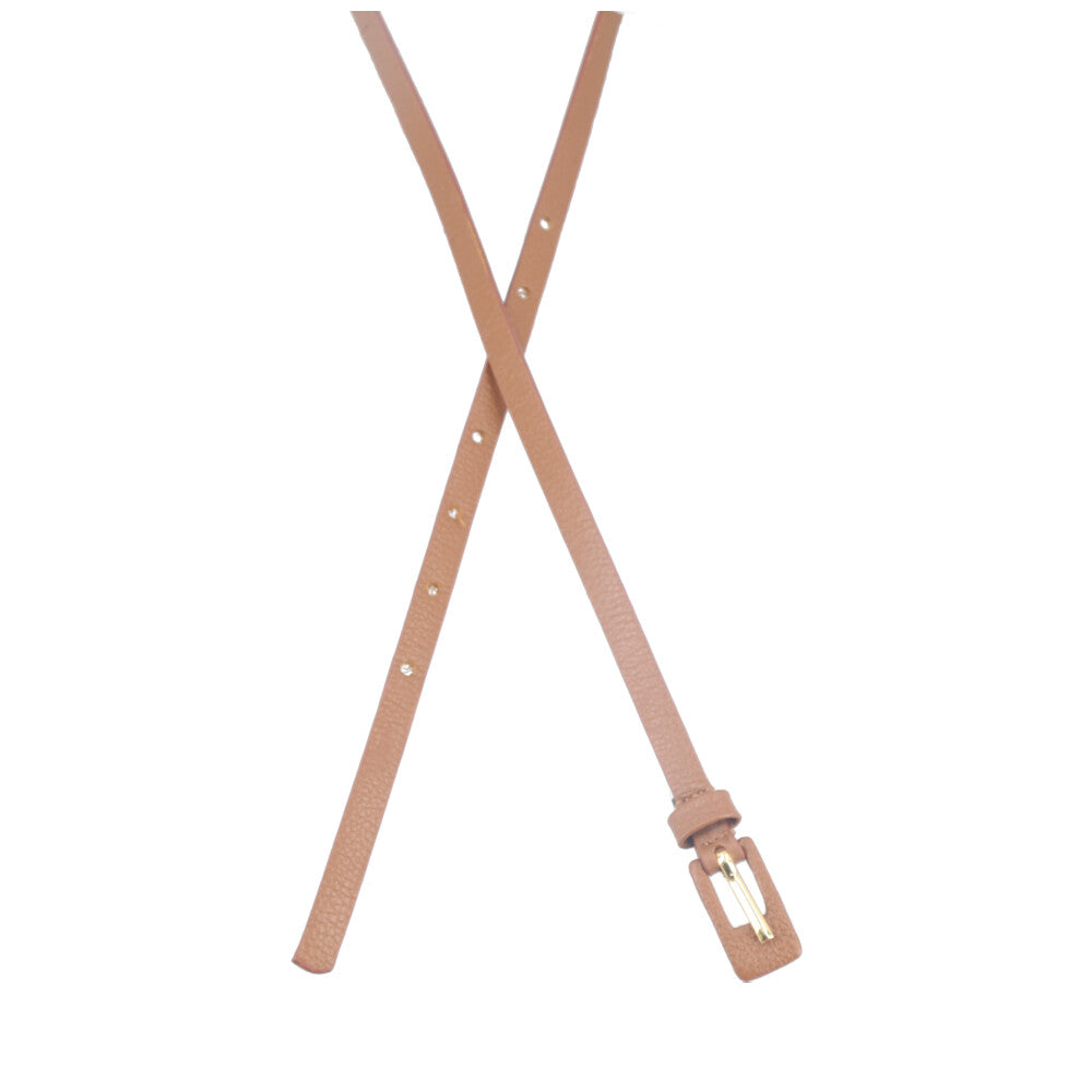 Cinto Feminino de Couro Fino com Fivela Encapada Caramelo