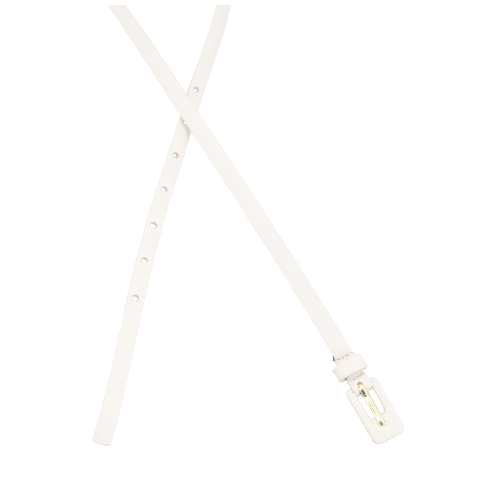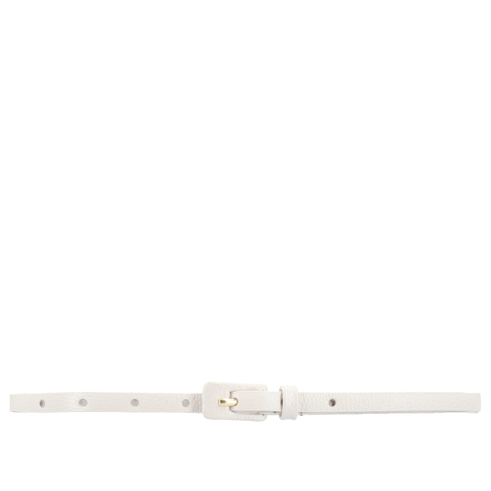 Cinto Feminino de Couro Fino com Fivela Encapada Marfim