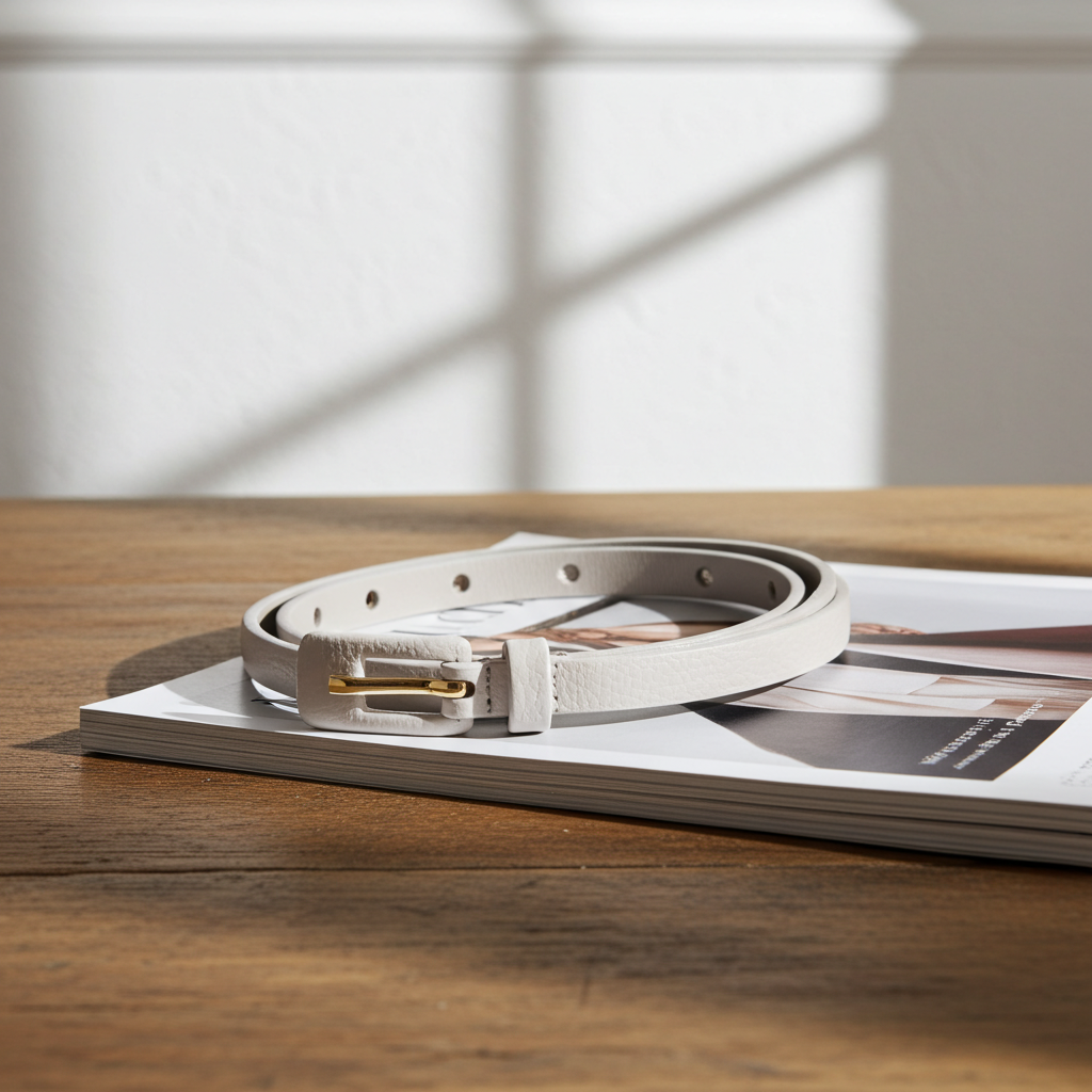Cinto Feminino de Couro Fino com Fivela Encapada – Delicado e Versátil
