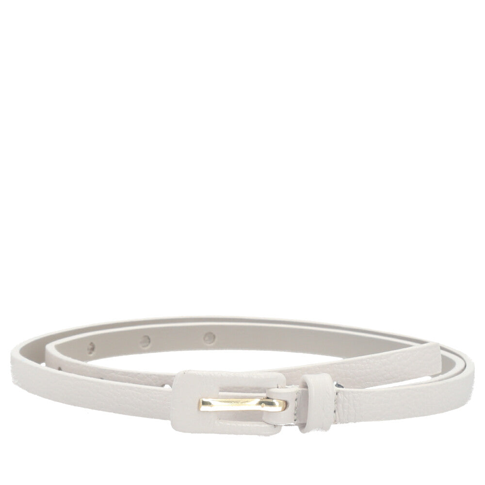 Cinto Feminino de Couro Fino com Fivela Encapada Marfim