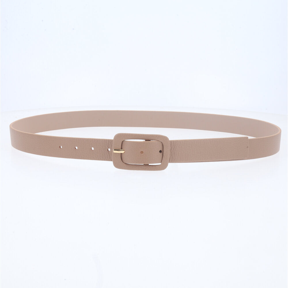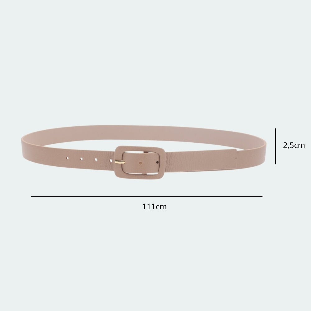Cinto Feminino de Couro Legítimo com Fivela Forrada Bege escuro