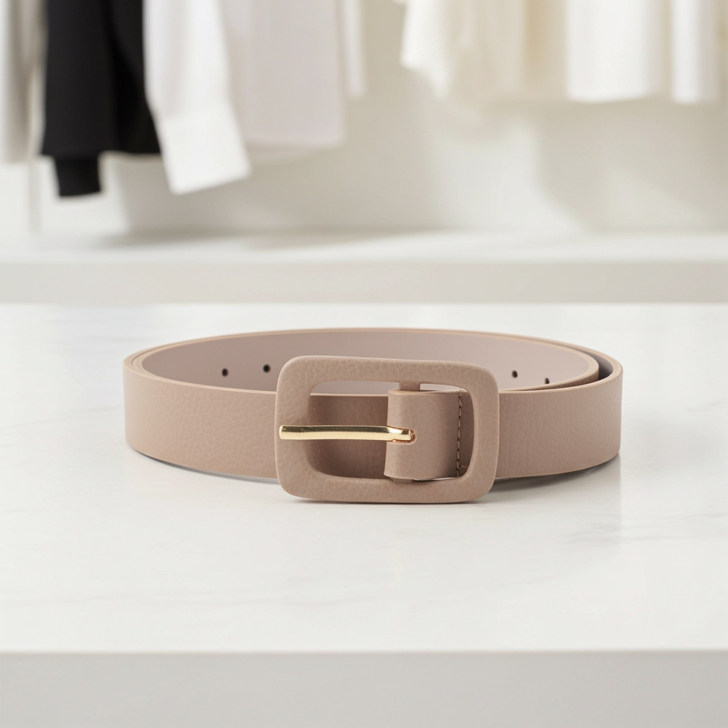 Cinto Feminino de Couro Legítimo com Fivela Forrada – Clássico e Versátil para Looks Casuais e Elegantes