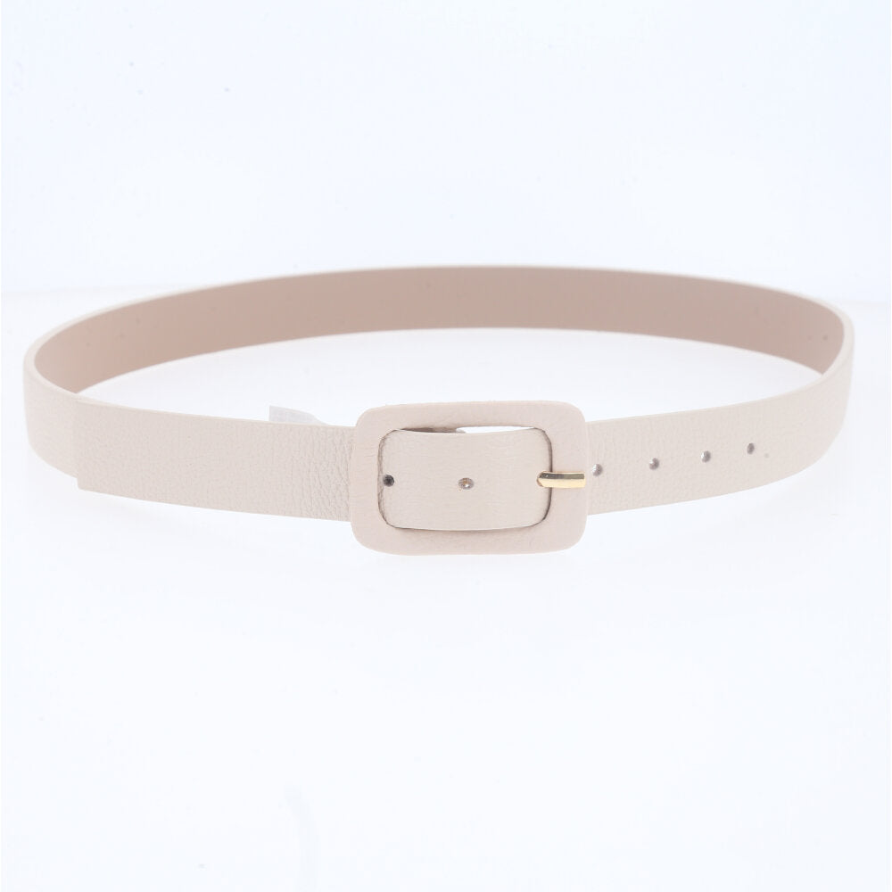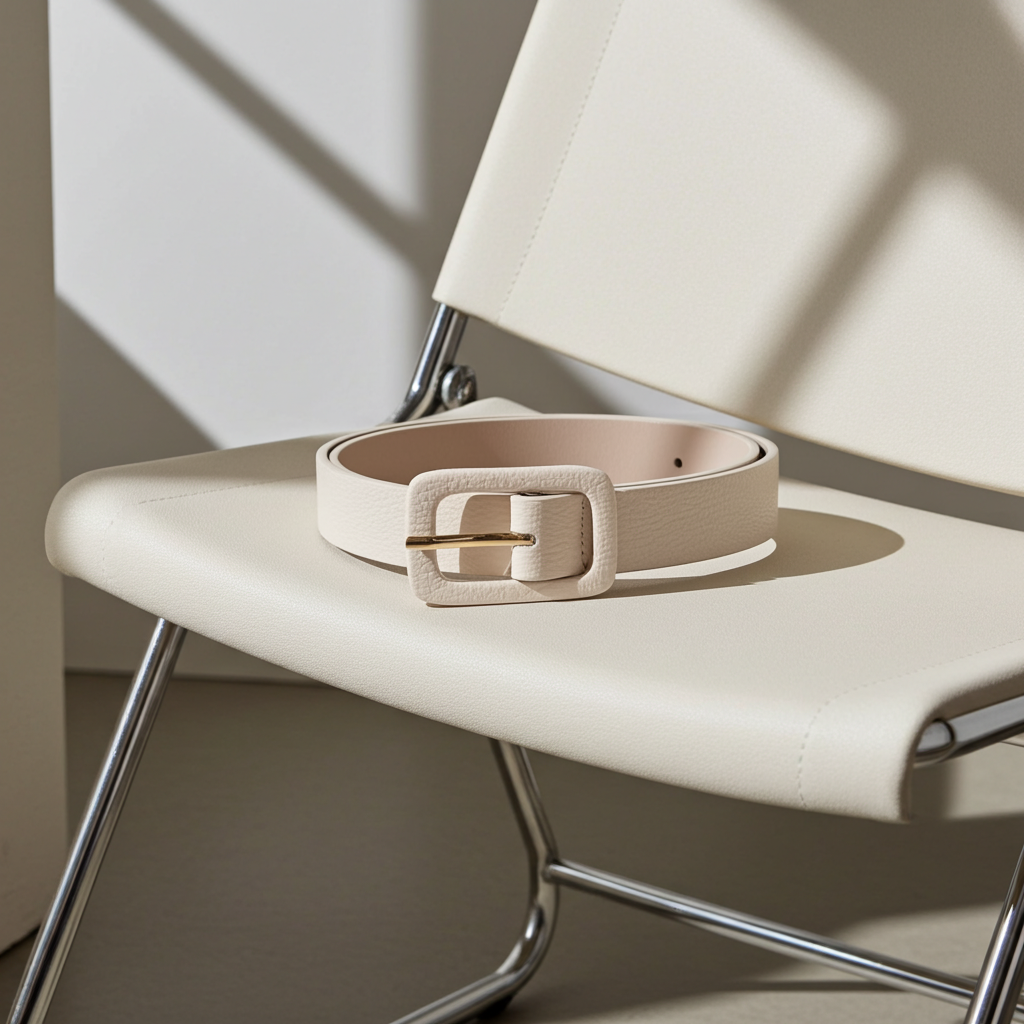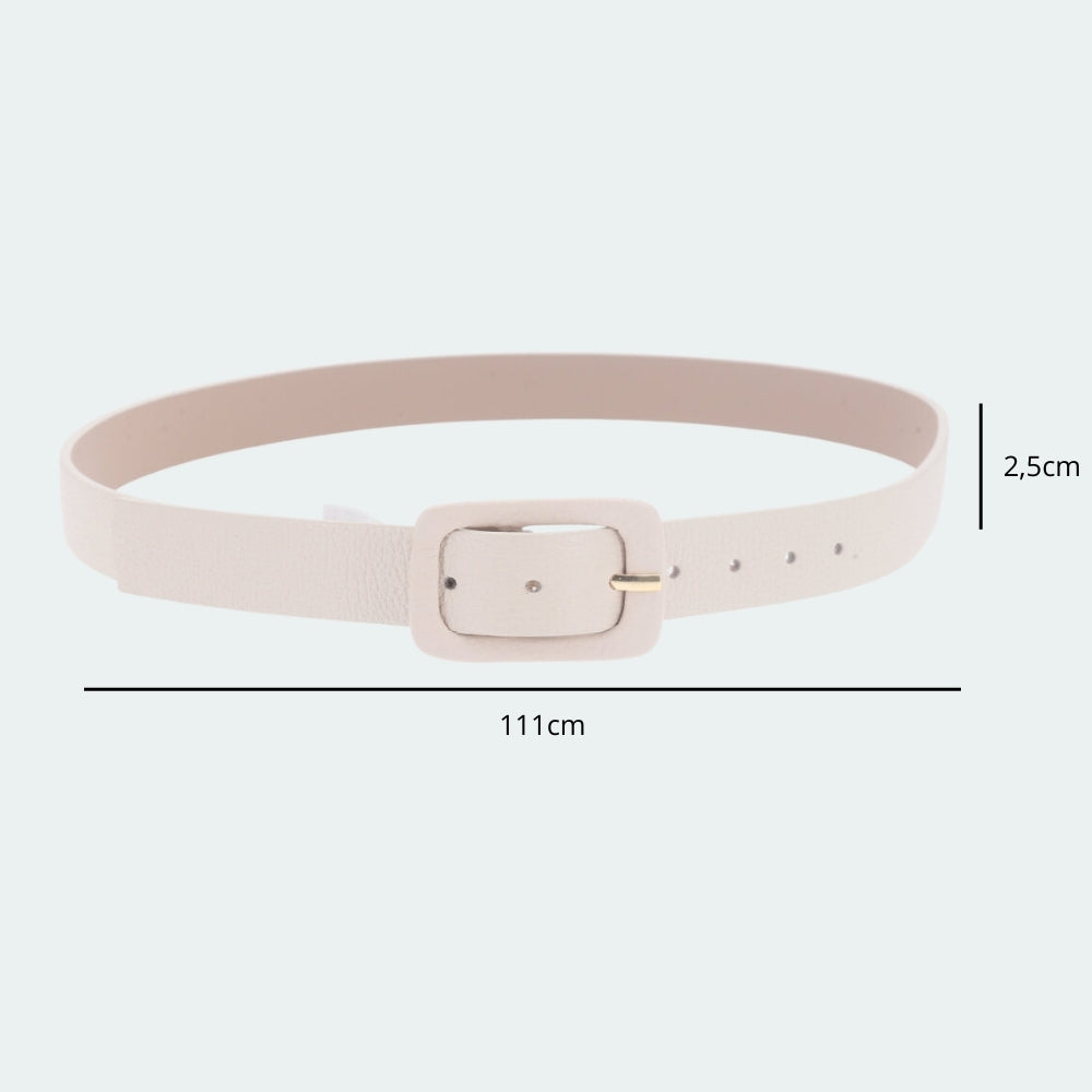 Cinto Feminino de Couro Legítimo com Fivela Forrada Marfim