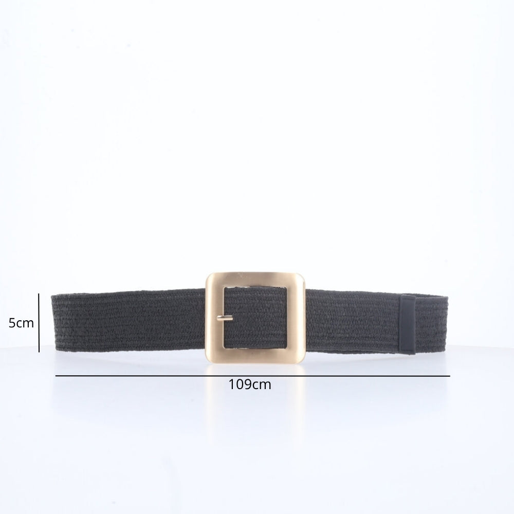 Cinto Feminino de Ráfia com Elástico e Fivela Metalizada – Estilo Natural e Elegante