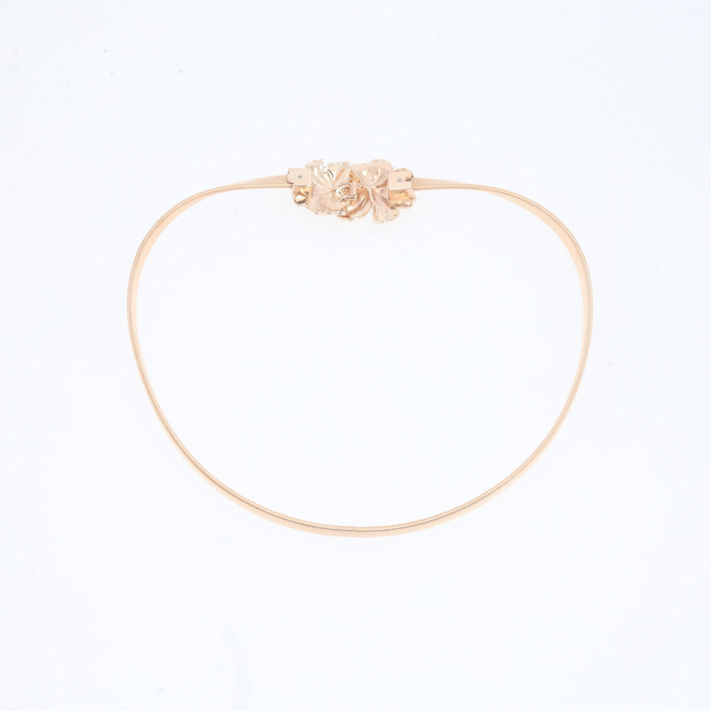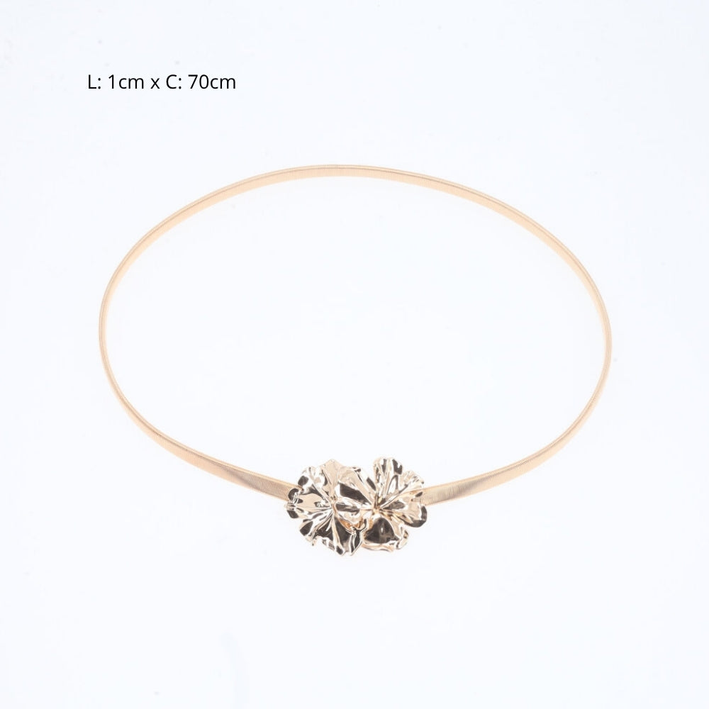 Cinto Metálico com Mola Elástica e Fivela de Flor Ouro