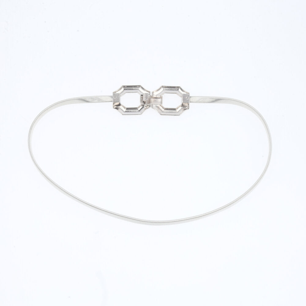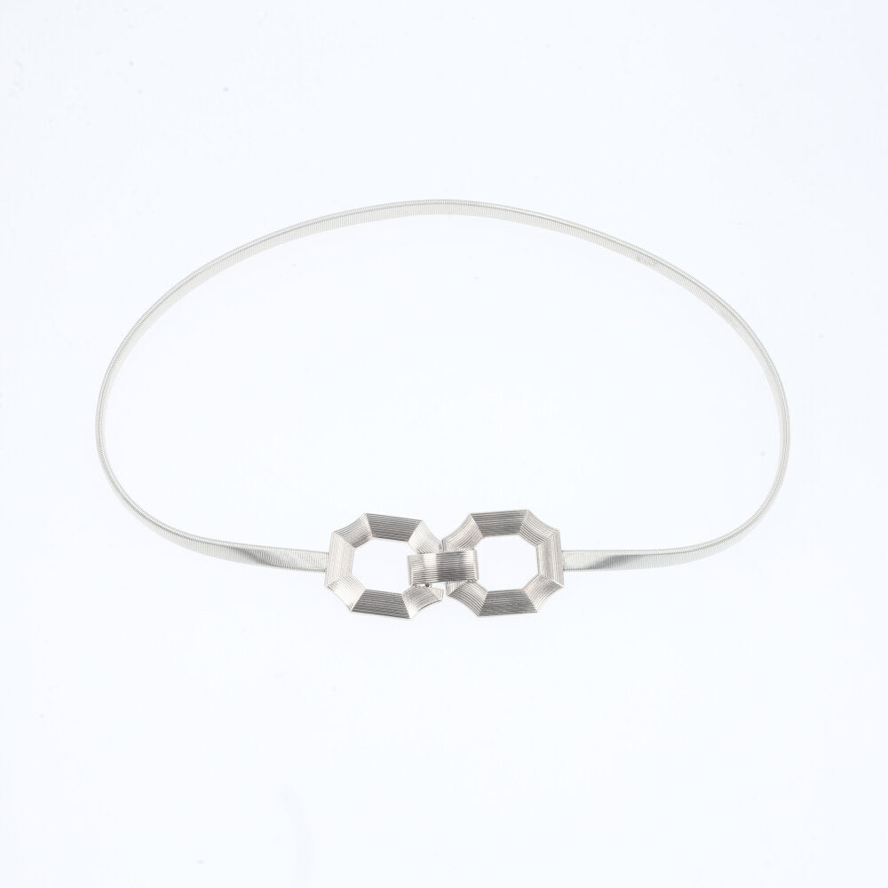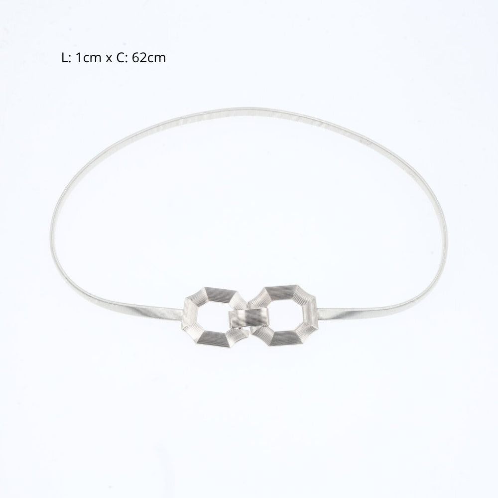 Cinto Metálico com Mola Elástica e Fivela Geométrica Prata