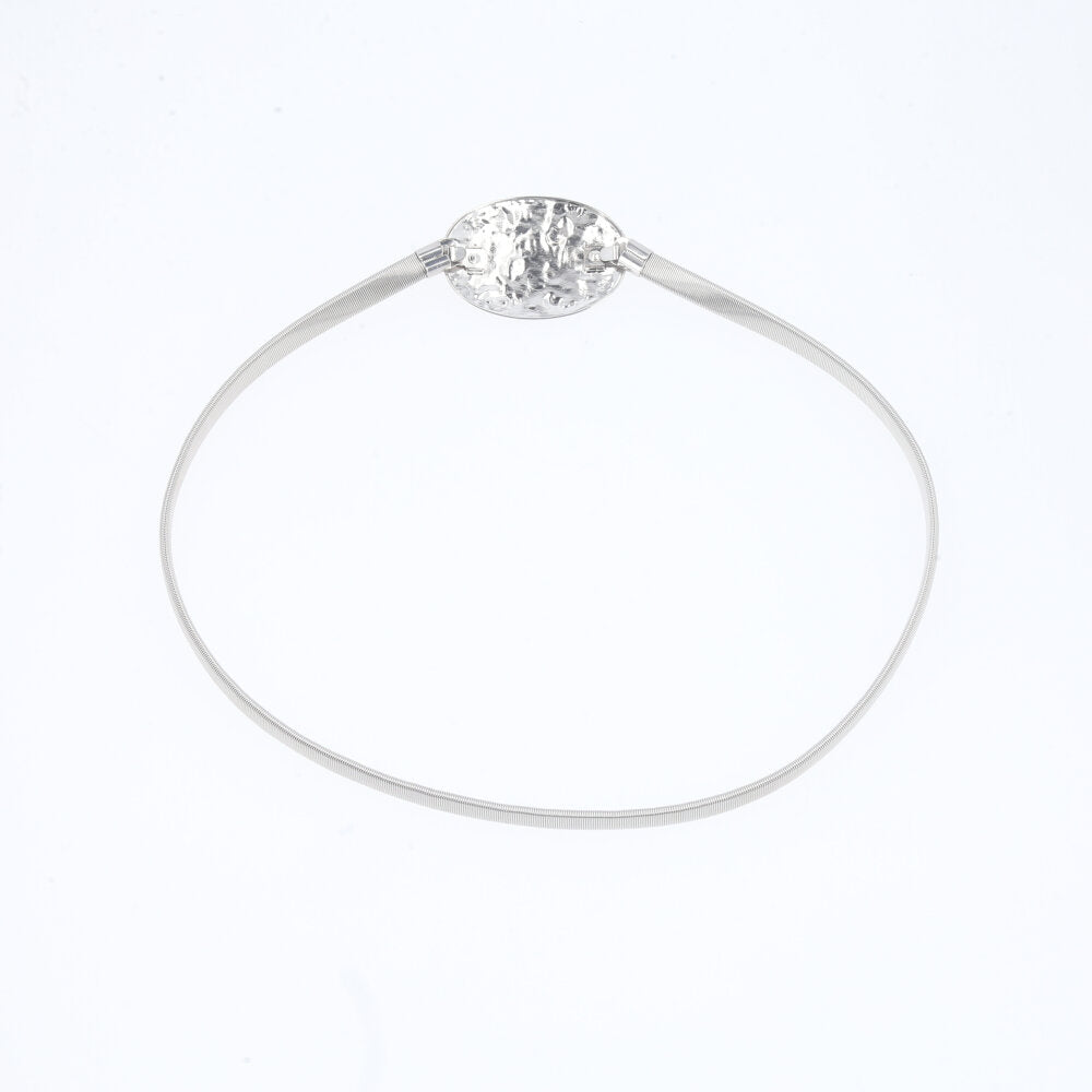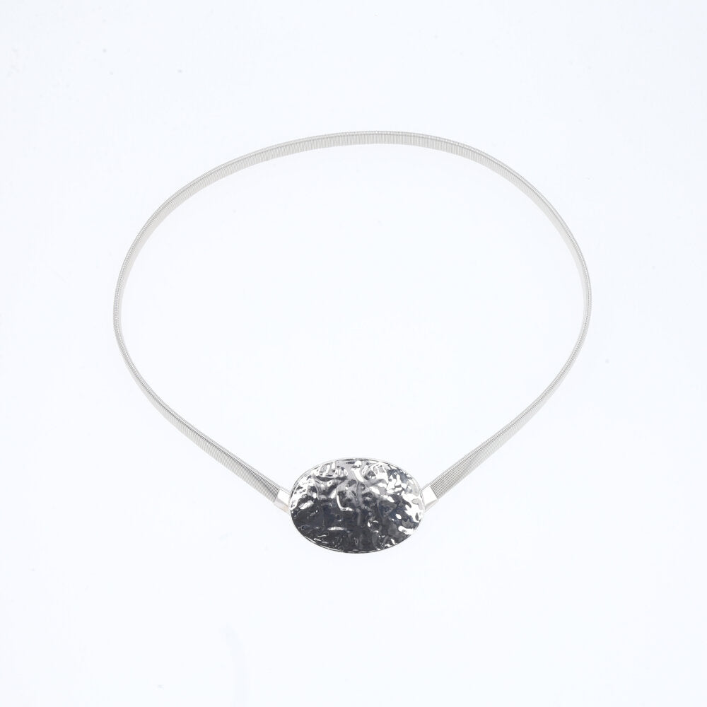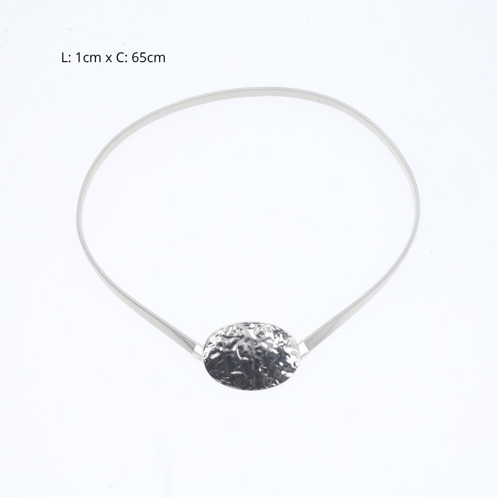 Cinto Metálico com Mola Elástica e Fivela Oval Prata