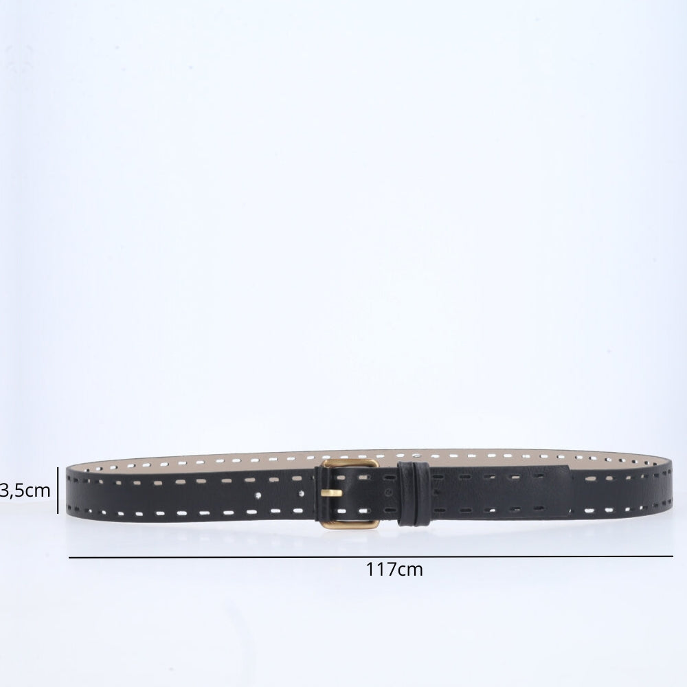 Cinto Plus Size Couro Legítimo com Detalhe Vazado Preto