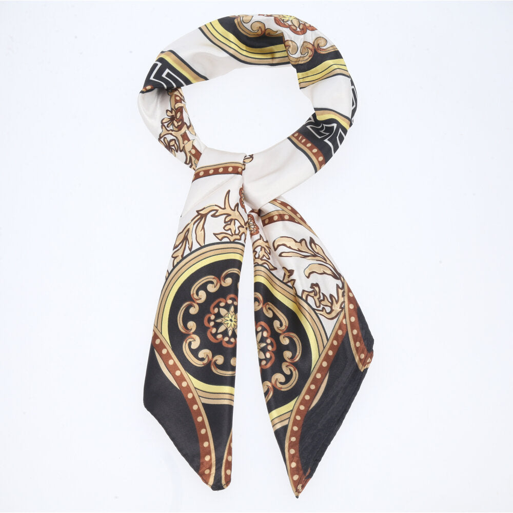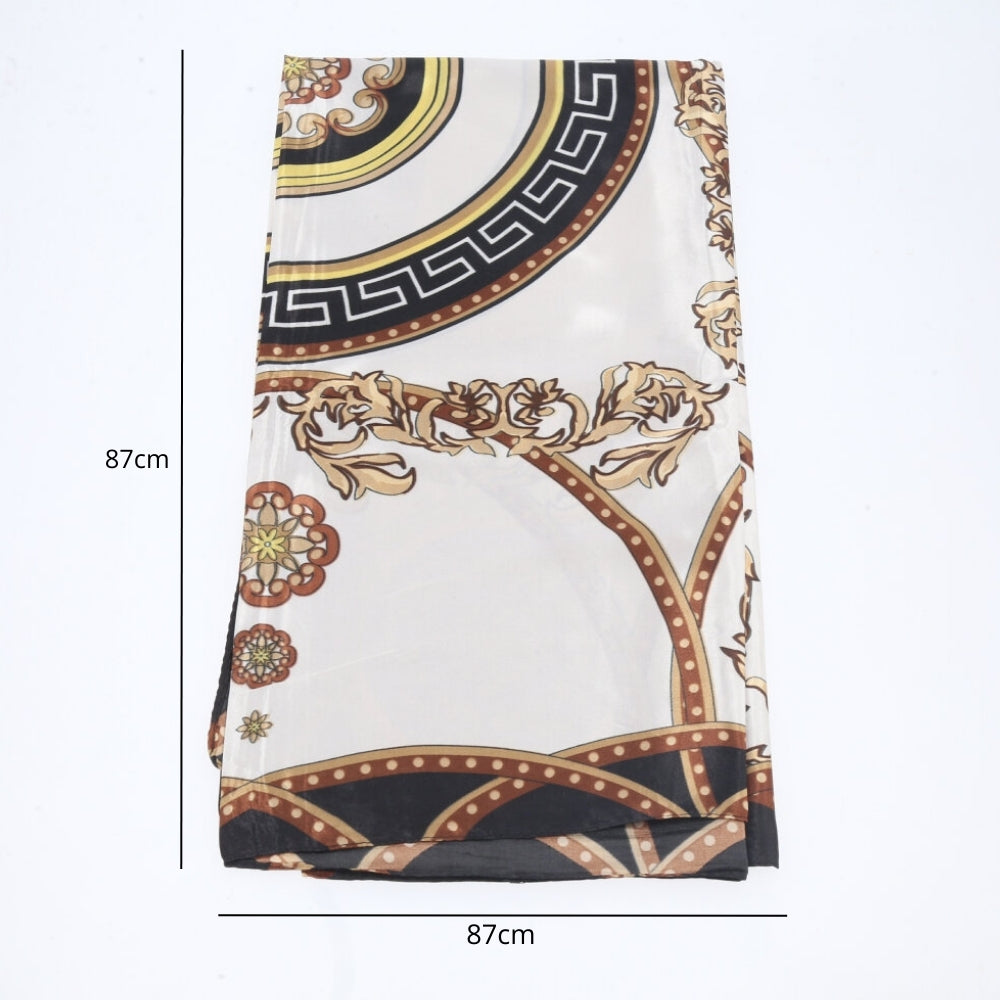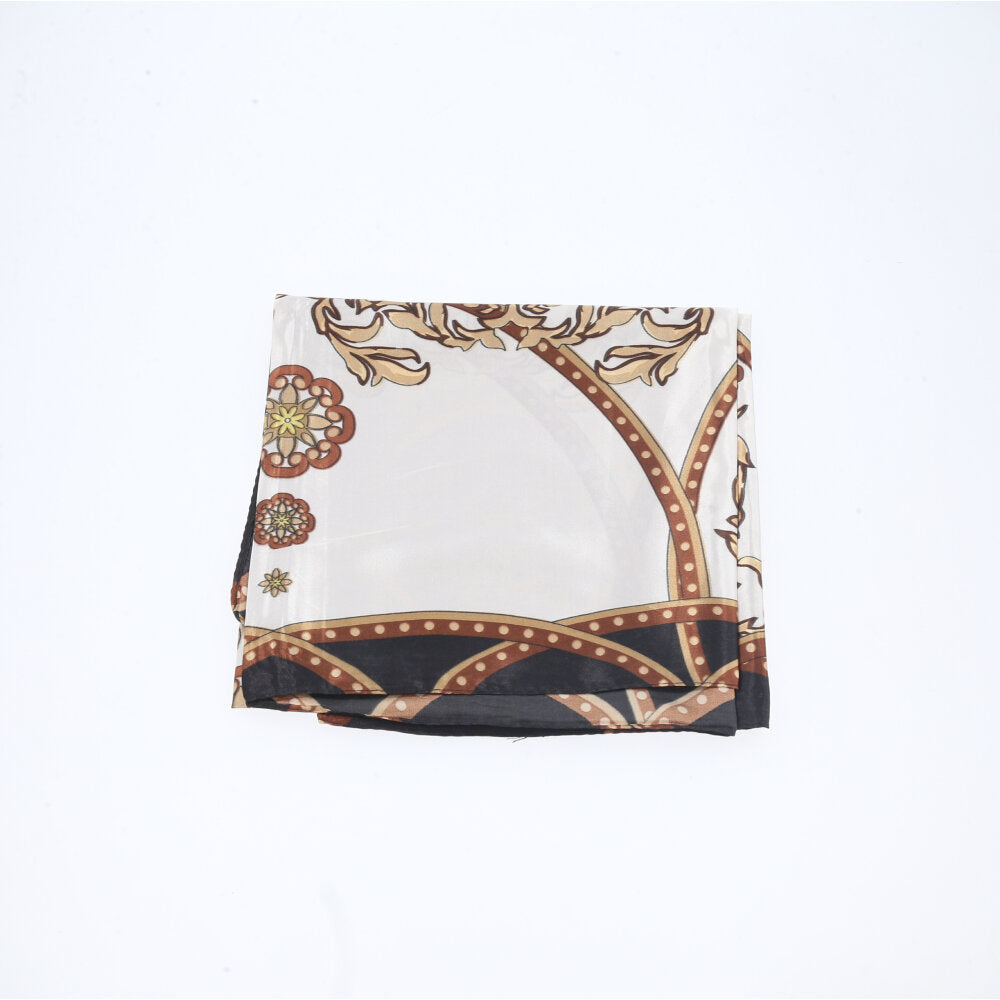 Lenço de Cetim Feminino Estampado Indiano Marfim