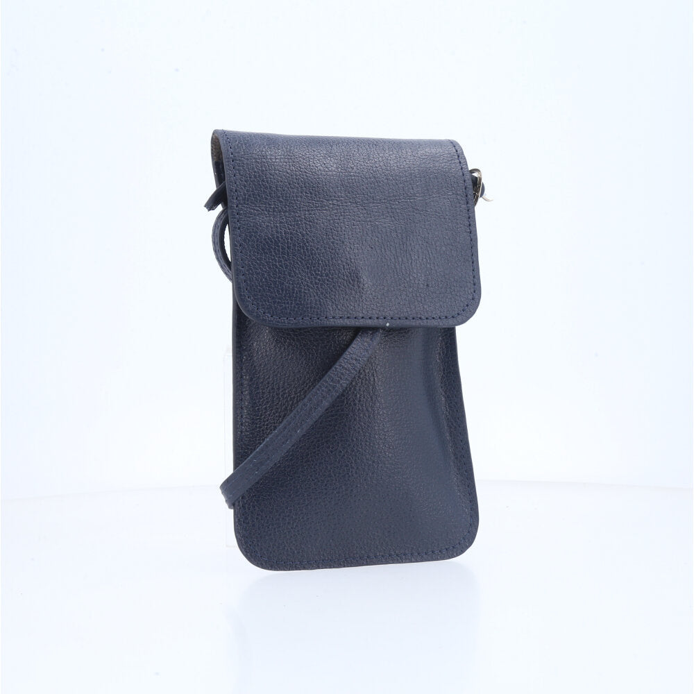 Porta Celular em Couro com Alça Transversal Azul escuro